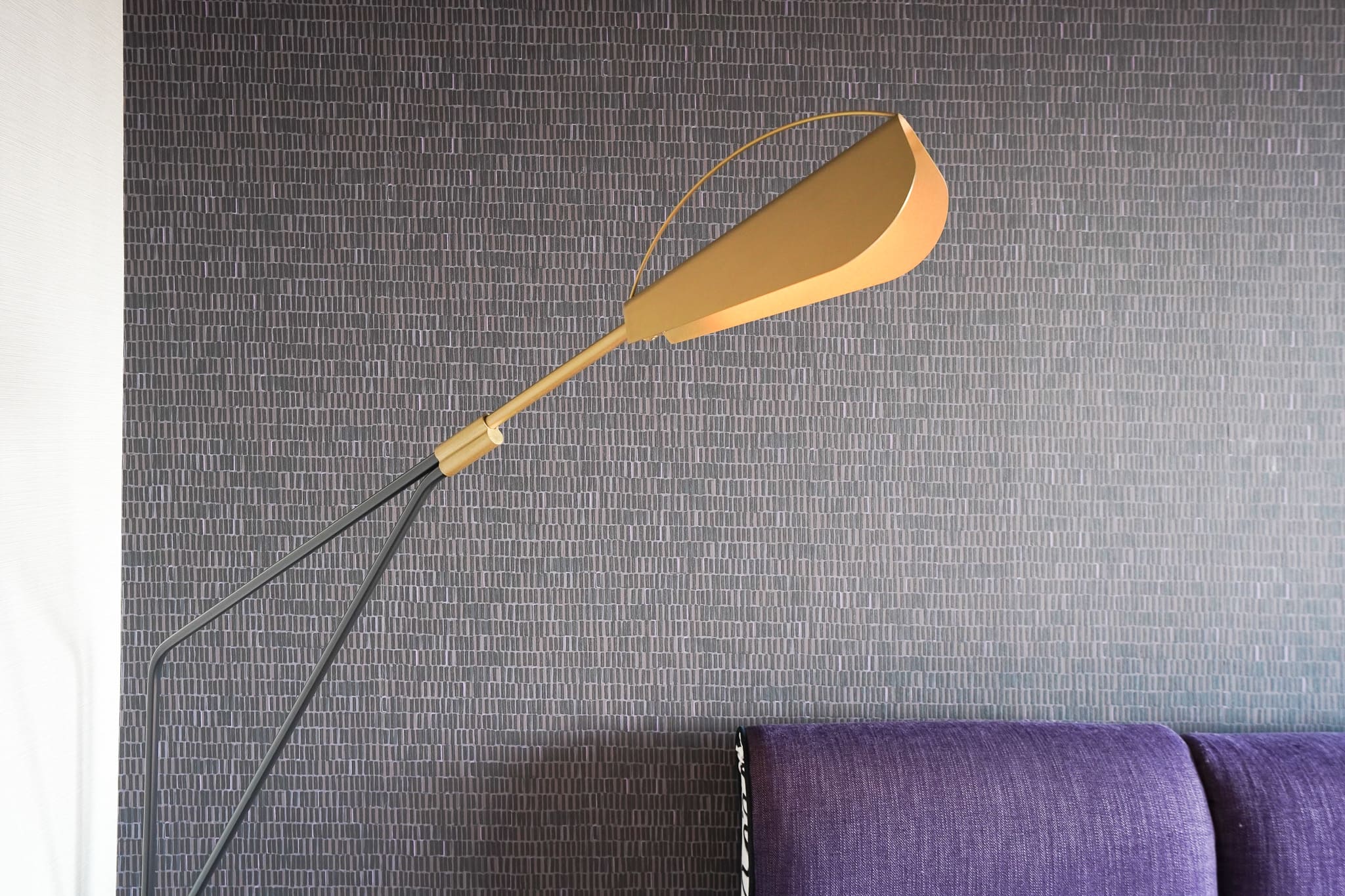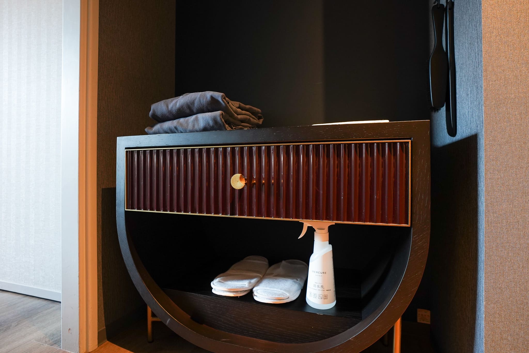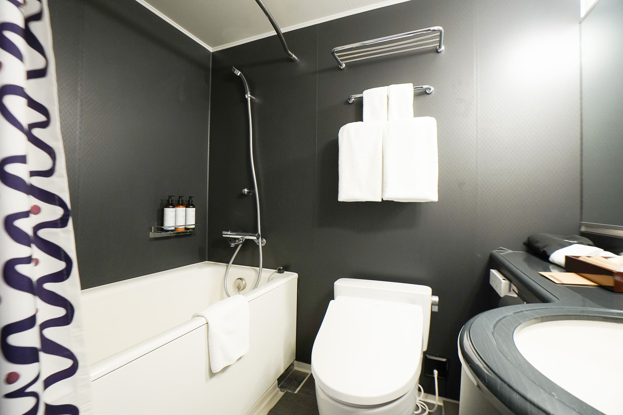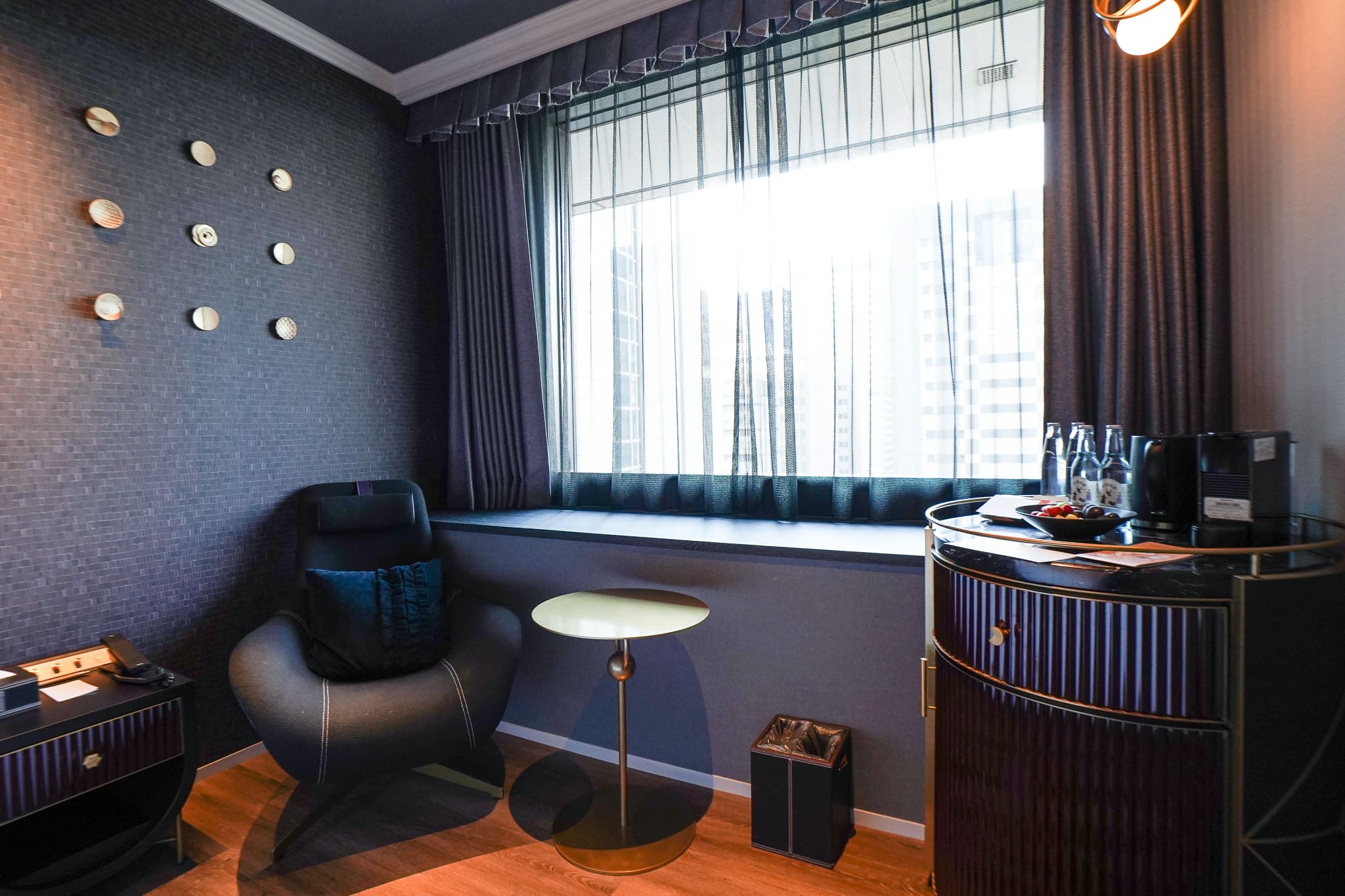 シックなカラーを基調とした客室は、壁のオブジェやデザイン性の高さが特徴的なインテリアライト、日本を感じられる桜のデザインのマットなどが素敵なアクセントになっています。