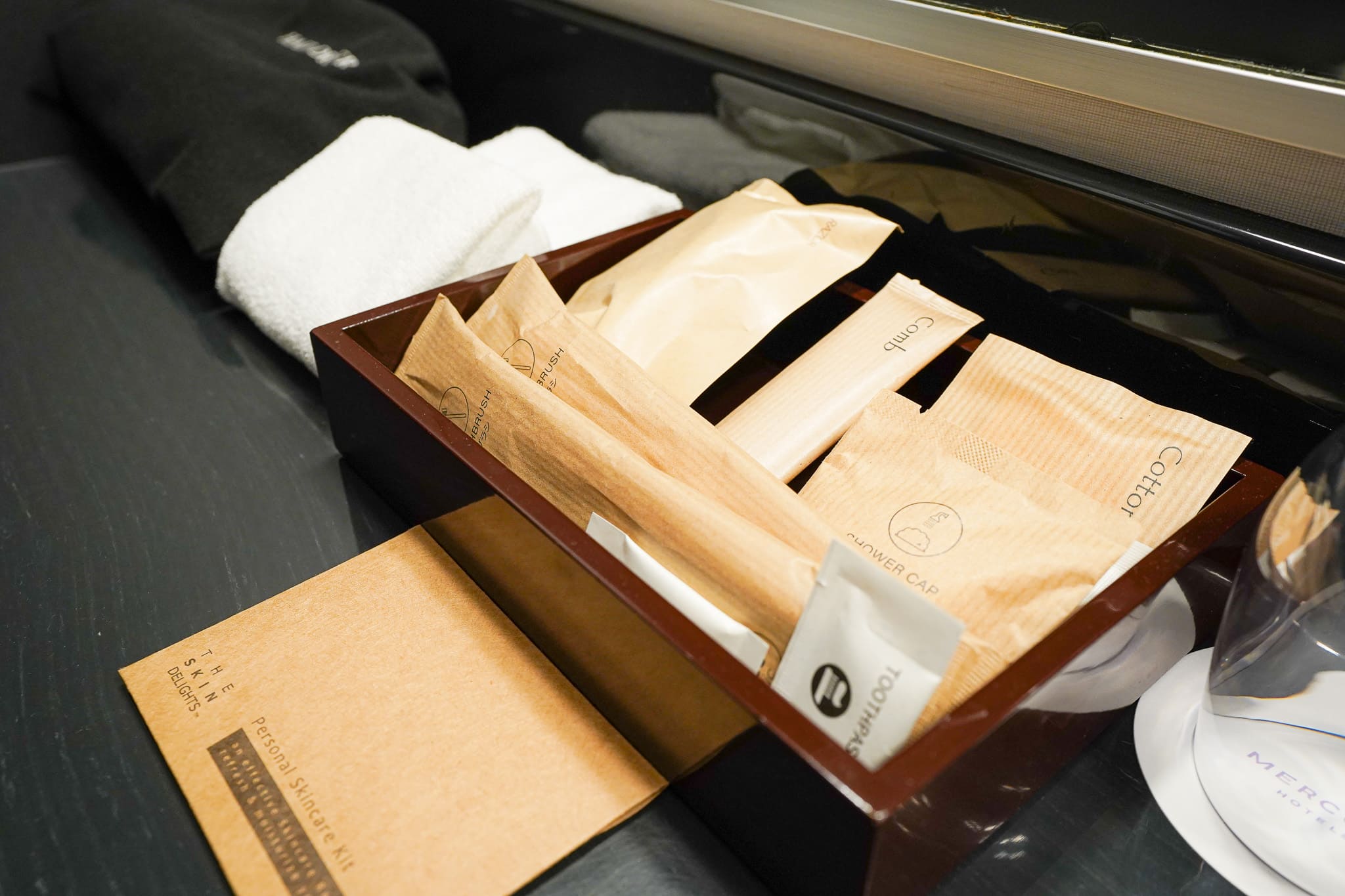 そのほかには上下分かれているパジャマ、スキンケアグッズ、歯ブラシ、コームなど宿泊するのに必要なアイテムが用意されています。