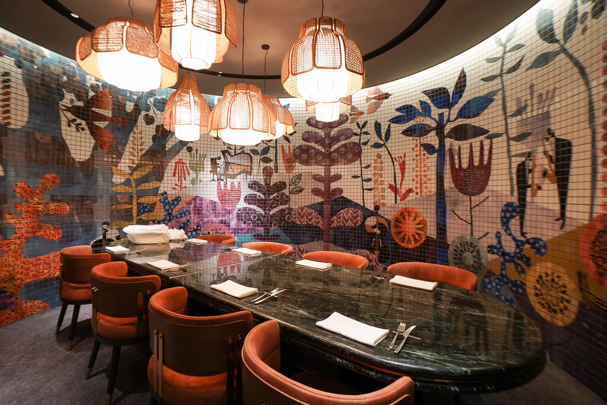 地下1Fにあるフレンチレストラン『La Scène』の天井には、パリ・オペラ座のトップダンサーであるエトワールを表したオブジェ。