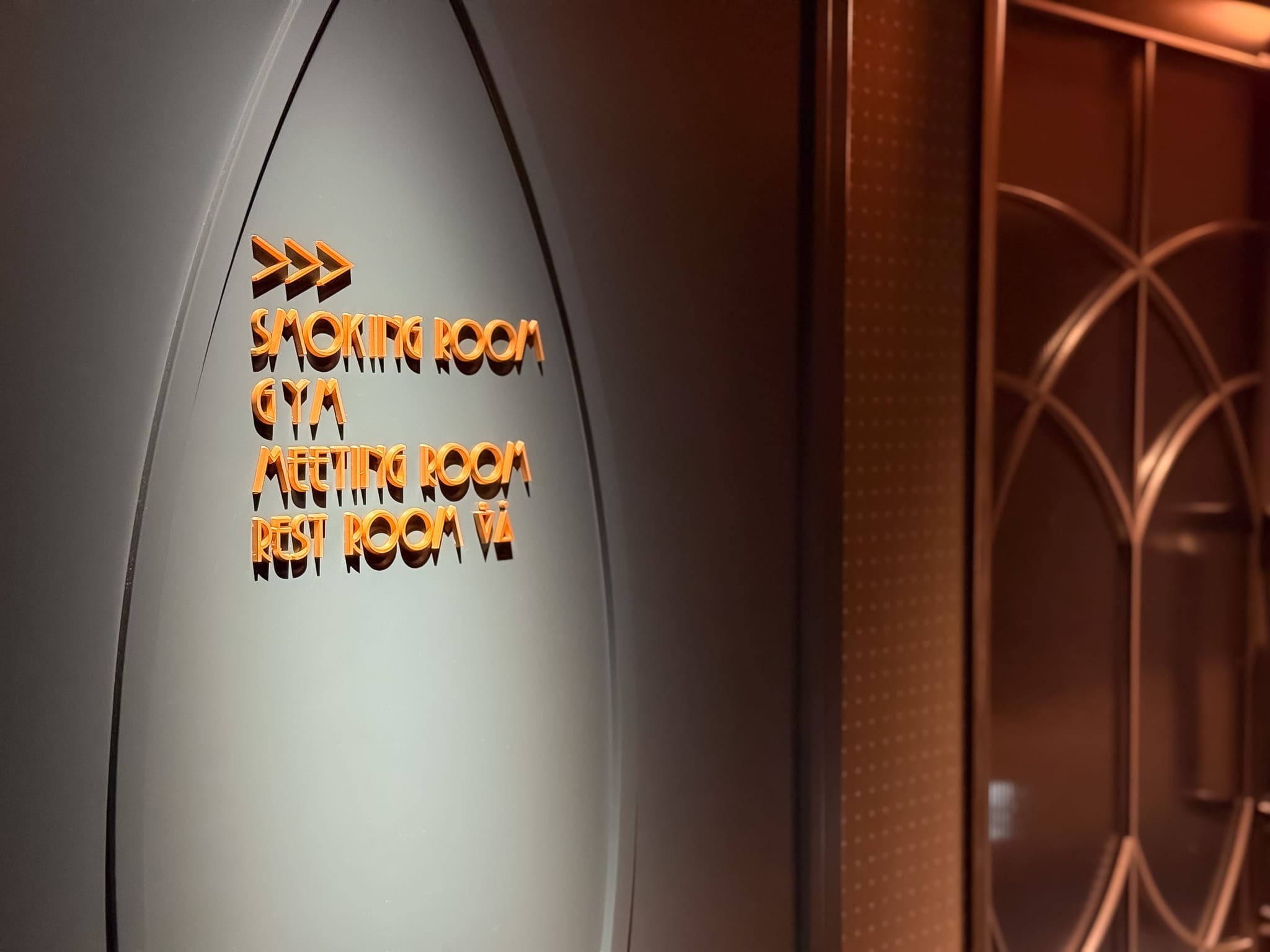 廊下も美術館のような美しさで、それぞれの館内施設を表す箇所にはアール・デコ様式のフォントやオシャレなピクトグラムが用いられています。